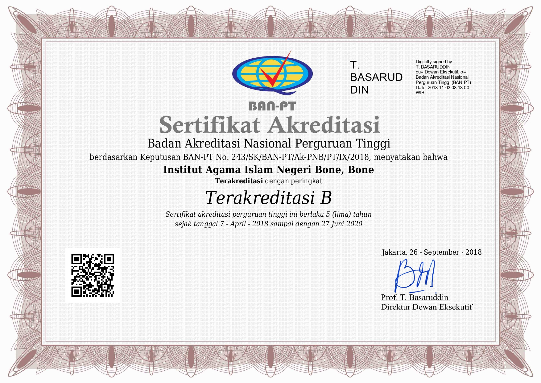 Dokumen resmi akreditasi kelembagaan dan program studi IAIN Bone